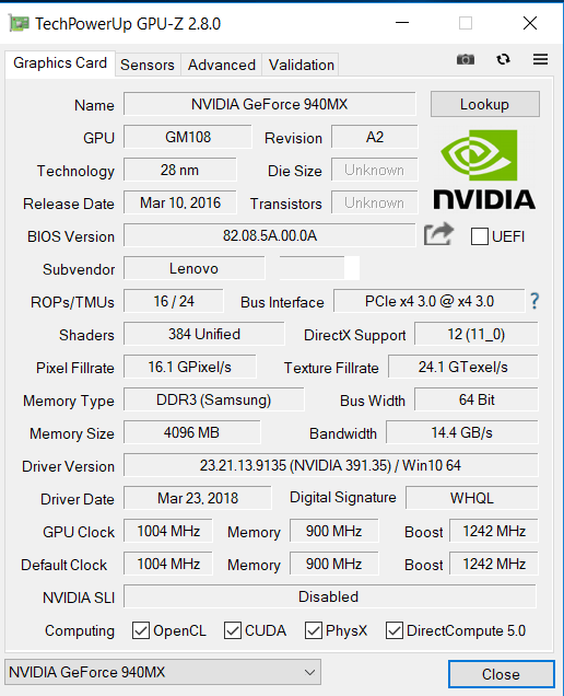 The nvidia geforce 940mx is a mid range laptop graphics card with directx 12 support fl 11 0. It has been announced in the first quarter of 2016 and is the refresh of the geforce 940m.